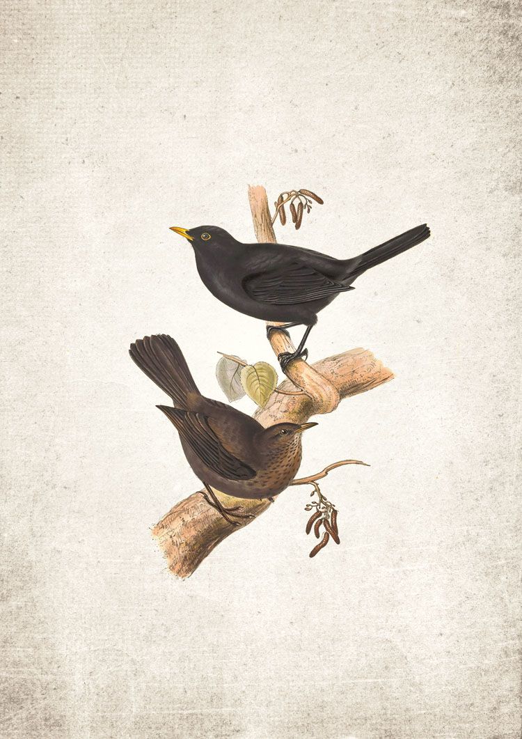 A vibrant, dramatic and antique restored Blackbird Giclee Print. Our artwork has been taken from a vintage book dating from as far back as the 1600s. Enjoy this unique timeless artwork in your home or office. High-quality fine art print faithfully restored to bring old artwork back to life.