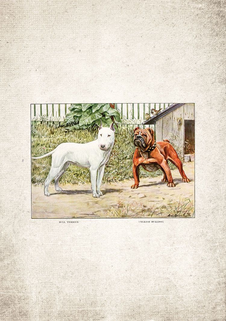 A vibrant, notable and antique restored Bull Terrier Giclee Print. Our artwork has been taken from a vintage book dating from as far back as the 1600s. Enjoy this unique timeless artwork in your home or office. High-quality fine art print faithfully restored to bring old artwork back to life.