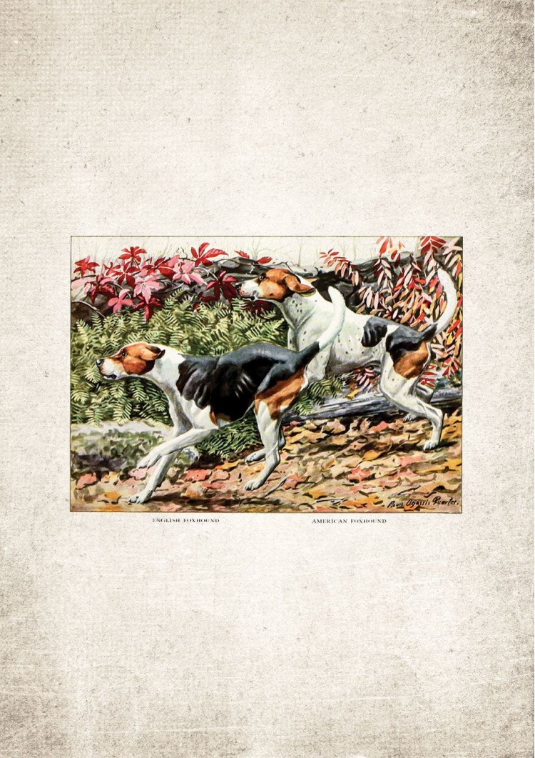 A vibrant, impressive and carefully restored Foxhound Giclee Print. Our artwork has been taken from a vintage book dating from as far back as the 1600s. Enjoy this unique timeless artwork in your home or office. High-quality fine art print faithfully restored to bring old artwork back to life.