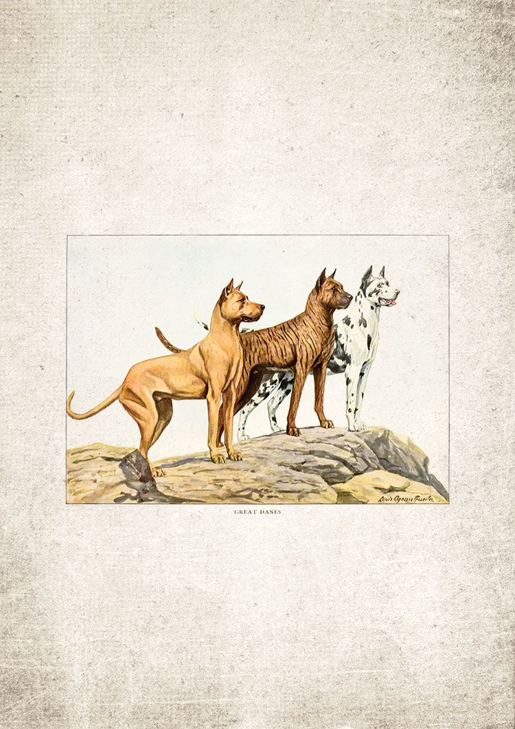 A stunning, dramatic and faithfully restored Great Dane Giclee Print. Our artwork has been taken from a vintage book dating from as far back as the 1600s. Enjoy this unique timeless artwork in your home or office. High-quality fine art print faithfully restored to bring old artwork back to life.