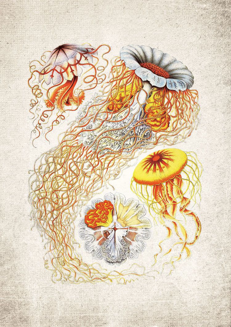 A beautiful, notable and antique restored Jellyfish Giclee Print. Our artwork has been taken from a vintage book dating from as far back as the 1600s. Enjoy this unique timeless artwork in your home or office. High-quality fine art print faithfully restored to bring old artwork back to life.