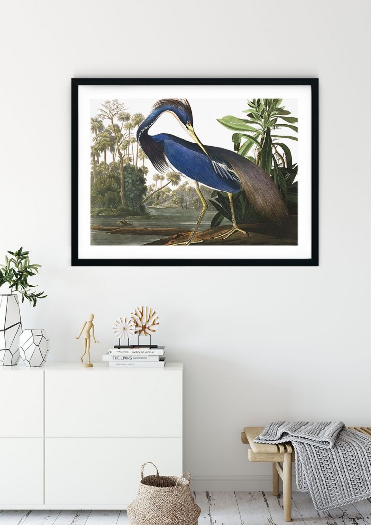 A beautiful, dramatic and antique restored Louisiana Heron Giclee Print. Our artwork has been taken from a vintage book dating from as far back as the 1600s. Enjoy this unique timeless artwork in your home or office. High-quality fine art print faithfully restored to bring old artwork back to life.