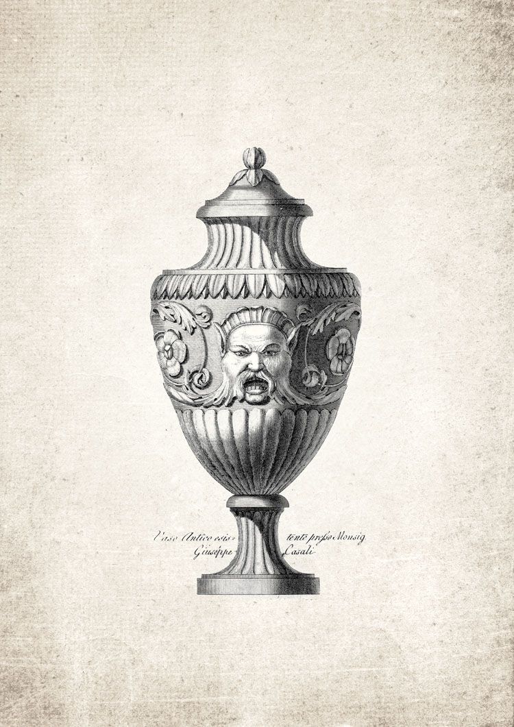 A stunning, dramatic and antique restored Roman Vase #5 Giclee Print. Our artwork has been taken from a vintage book dating from as far back as the 1600s. Enjoy this unique timeless artwork in your home or office. High-quality fine art print faithfully restored to bring old artwork back to life.