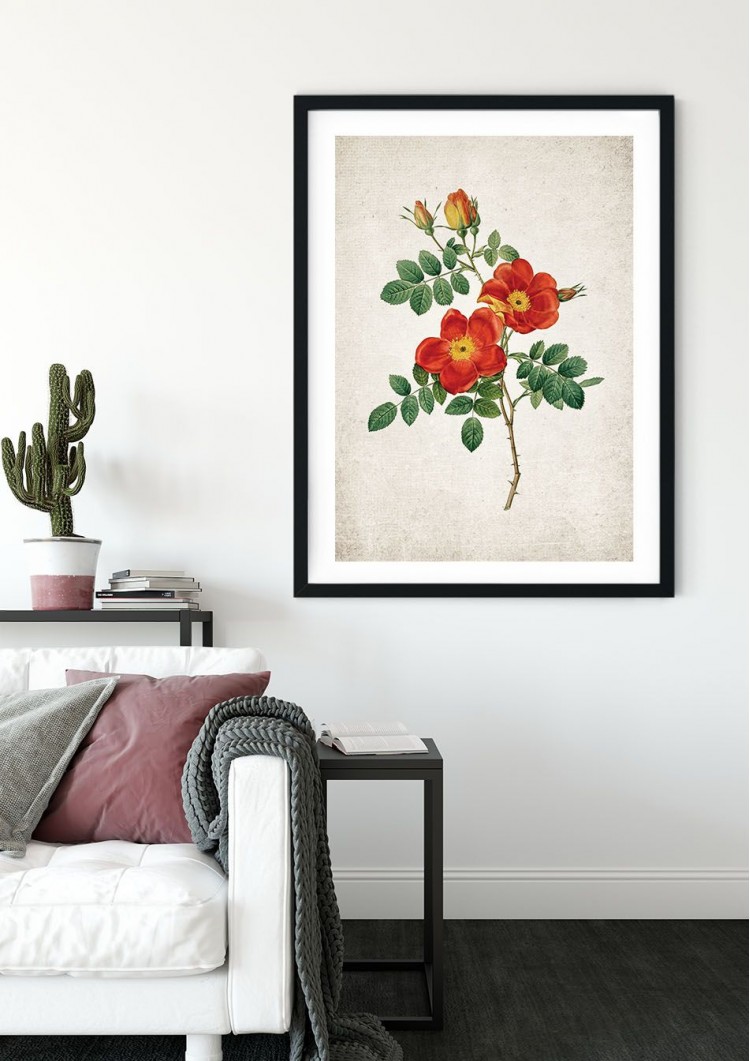 A beautiful, dramatic and faithfully restored Rose #3 Giclee Print. Our artwork has been taken from a vintage book dating from as far back as the 1600s. Enjoy this unique timeless artwork in your home or office. High-quality fine art print faithfully restored to bring old artwork back to life.
